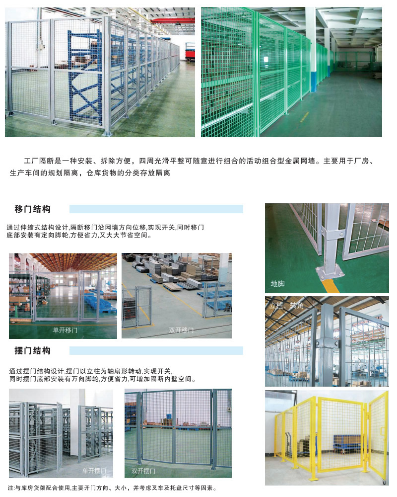 特點1.具有網身輕巧、造型新穎、美觀耐用的特點。2.采用高效浸塑(sù),十年防鏽。3.也可以適合於高速(sù)公路(lù)的橋梁作為防拋網使用。4.自身拆裝方便,重複使(shǐ)用(yòng)性好,可根據需要對(duì)圍網(wǎng)重新布局。5.屬於環保產品,最(zuì)終可(kě)回收利用。優點(diǎn)1.結構簡捷、整體牢固、輕盈美觀、安裝速(sù)度快。2.工廠(chǎng)化流水線生(shēng)產,品質更有保障(zhàng)。3.網架采用當今最先進的(de)熱浸塗塑技術進行防腐(fǔ)處理,更美觀、更耐用。4.產品(pǐn)終身可免維護。5.場地門可采用獨創(chuàng)的推拉(lā)結構,輕便、靈活、耐用。