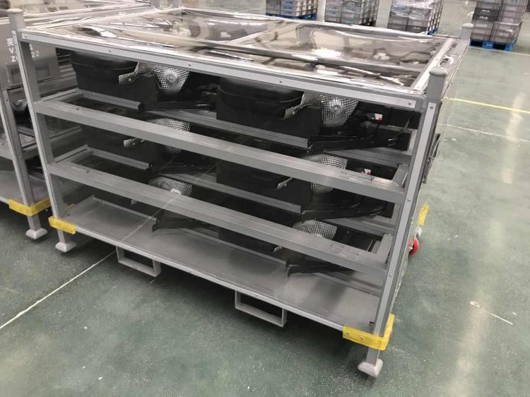 物流台車又叫載貨台車或籠車,是一種安裝有四隻腳輪的運送與儲存物料的單元移動集裝設備。常用於大型超市的物流配(pèi)送或工廠工序間的物流周轉。